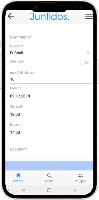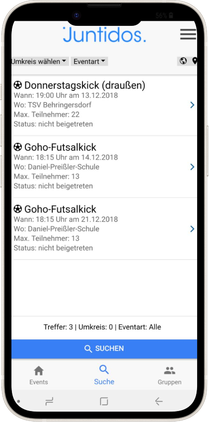Mobile Plattform, um lokale Fußball-Events zu erstellen, zu finden und neue soziale Kontakte zu knüpfen. Vision: Ausweitung auf weitere Sportarten.