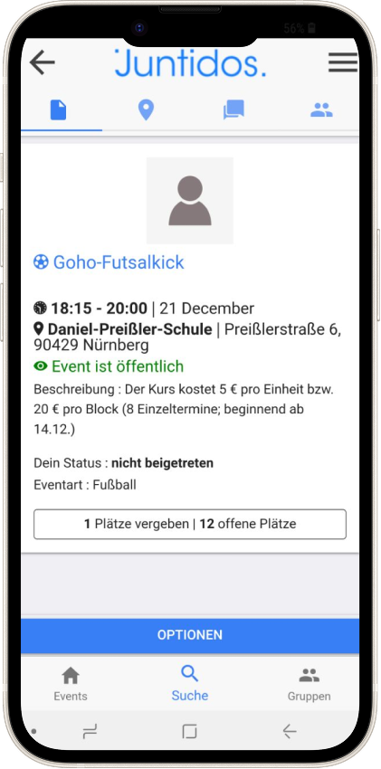 Mobile Plattform, um lokale Fußball-Events zu erstellen, zu finden und neue soziale Kontakte zu knüpfen. Vision: Ausweitung auf weitere Sportarten.